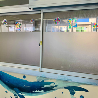 シーオブドリームス2025年Soraふれあい作品~それぞれに好きな水彩絵の具とオイルパステルを使って、子どもたちが弾き絵手法で描いたお魚たちと一緒に、スキューバ体験です。 ひとりひとりの個性が、お魚たちから伝わってきます。ぜひ感じてみてください。